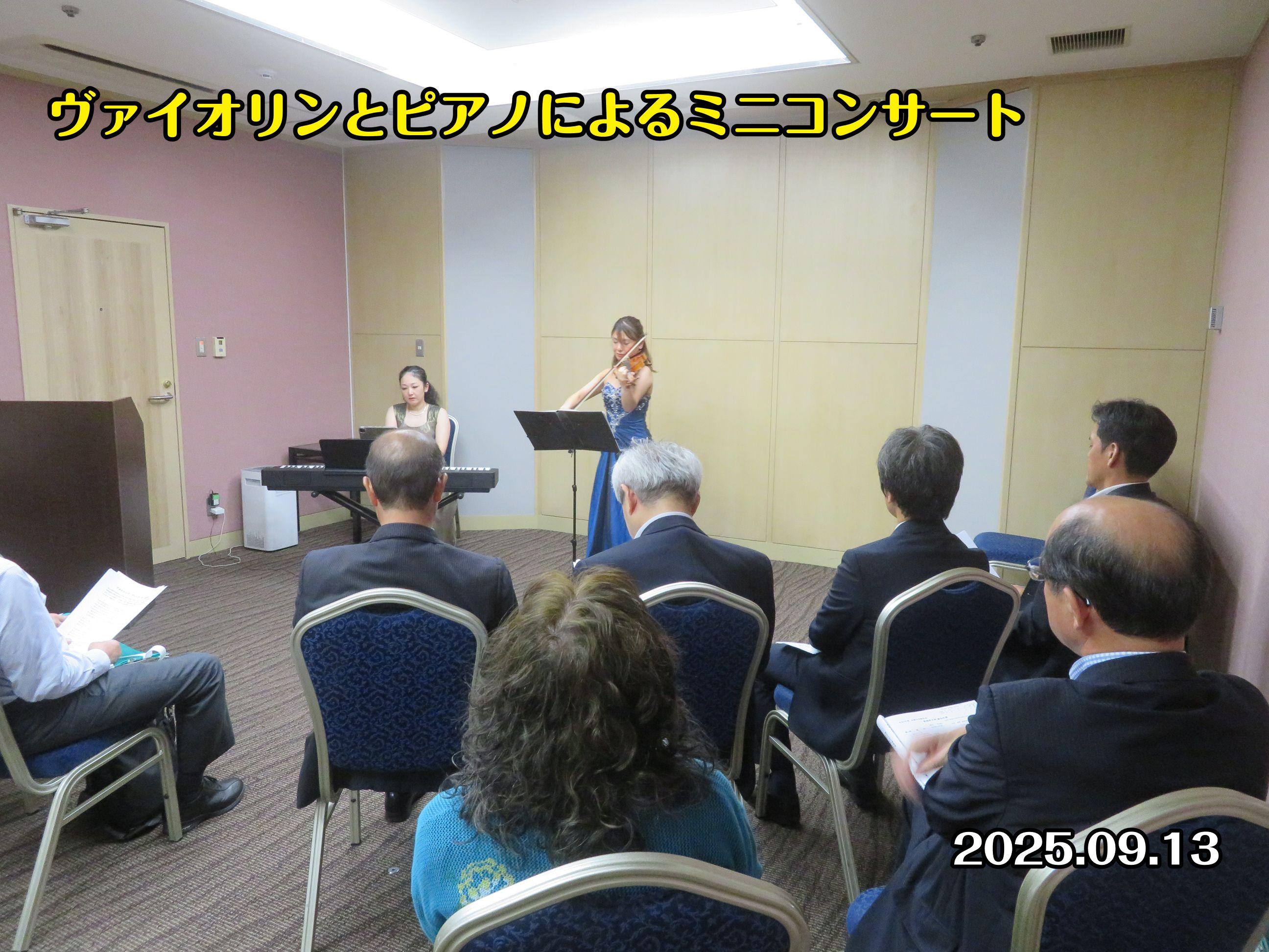 ヴァイオリンとピアノによるミニコンサートを開き、全7曲、室内音響による迫力、